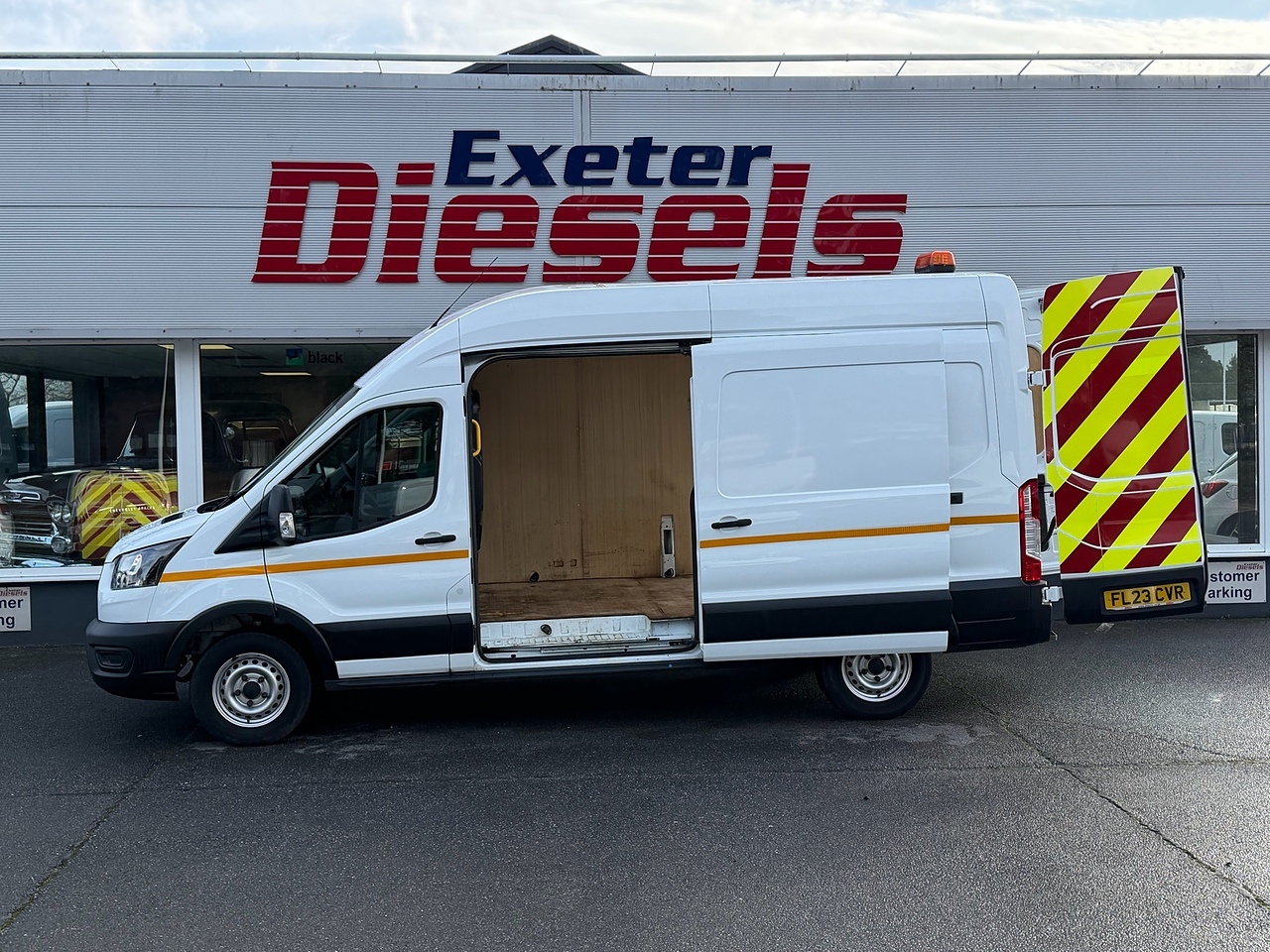 For sale is a brand new 2023 Ford Transit 350 EcoBlue Leader in Frozen White. This panel van is powered by a 2.0 diesel engine with 128 BHP, paired with a manual transmission.